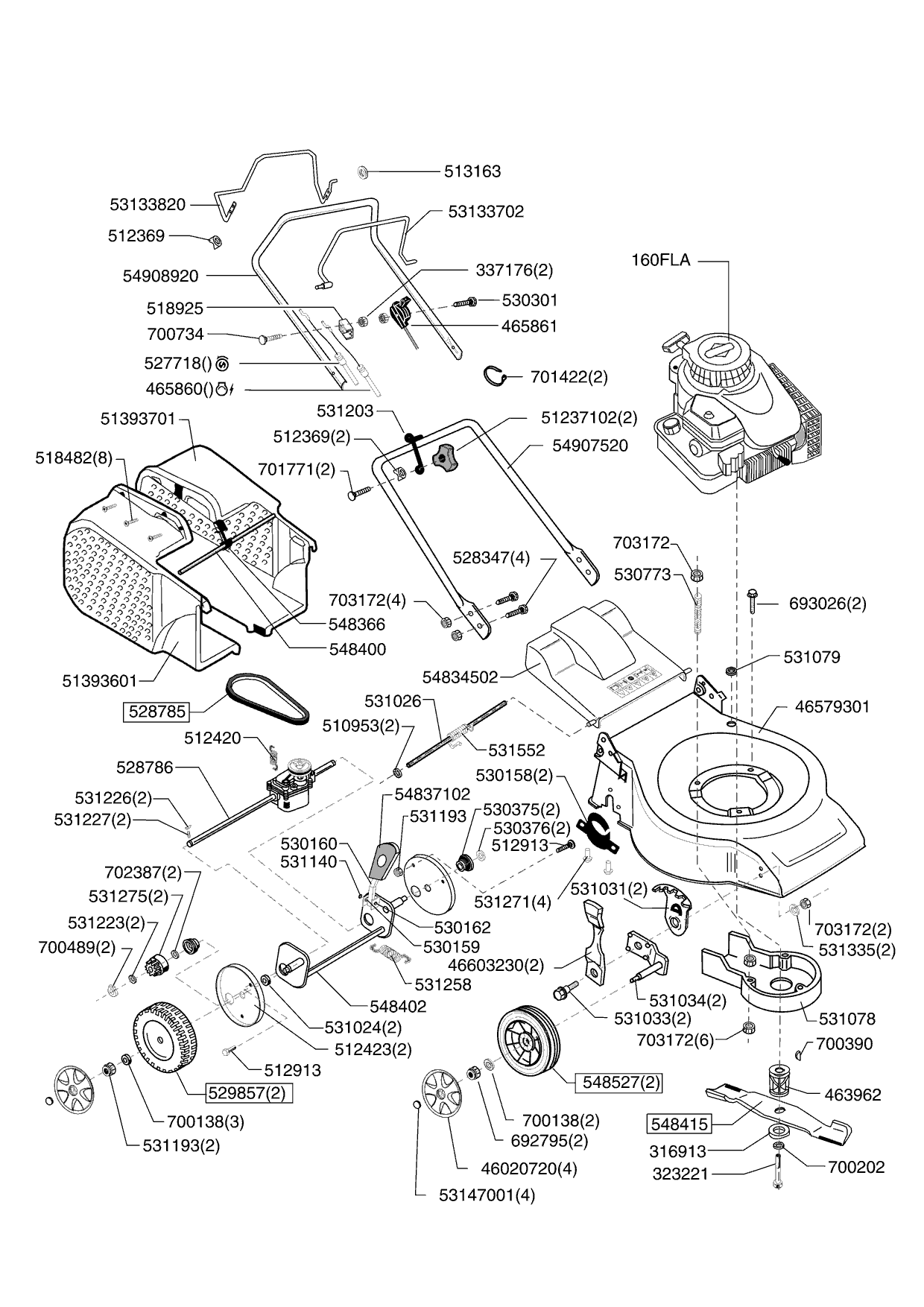 1| НОЖ, АДАПТЕР, РЕМЕНЬ, КОЛЕСА, ТРОС | AL-KO газонокосилка Classic 5.1 BR Артикул: 121429 | с 05/2009 года |