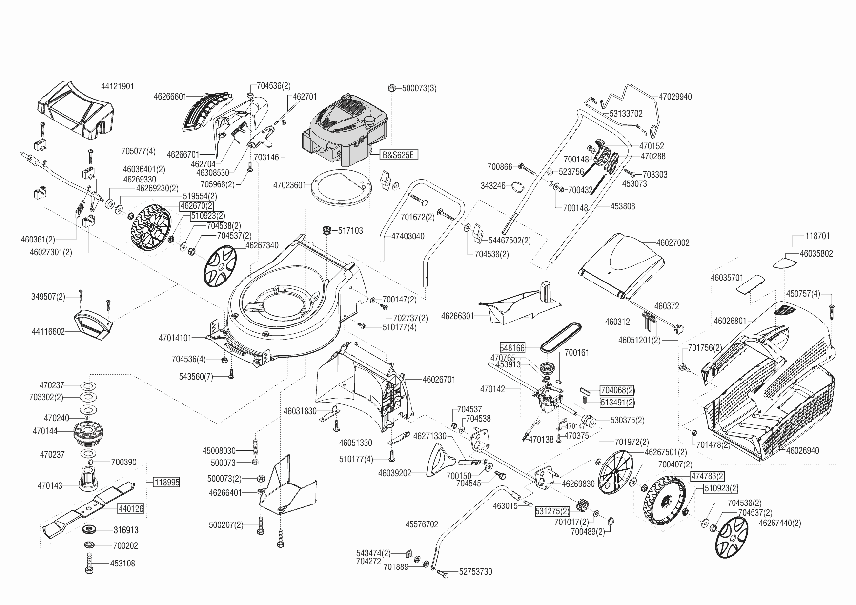 1| НОЖ, АДАПТЕР, РЕМЕНЬ, КОЛЕСА, ТРОС | AL-KO газонокосилка Classic 5.16 VS-B Plus Артикул: 119709 |с 09/2015 до 09/2017 года