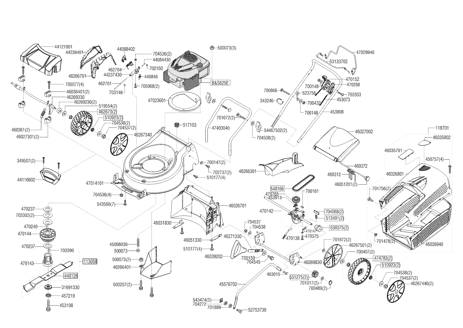 1| НОЖ, АДАПТЕР, РЕМЕНЬ, КОЛЕСА, ТРОС | AL-KO газонокосилка Classic 5.16 VS-B Plus Артикул: 119709 |с 09/2017 года