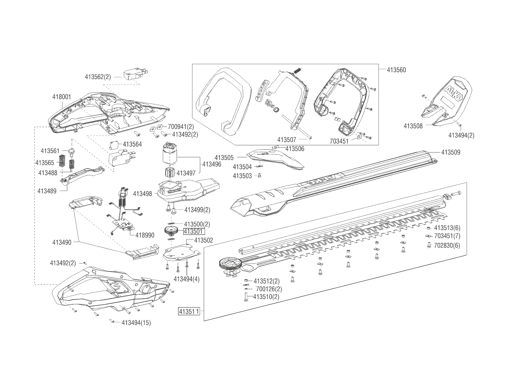 1 ЭЛЕКТРОДВИГАТЕЛЬ, АККУМУЛЯТОР, ЗАРЯДКА AL-KO кусторез аккумуляторный HT 2050 Артикул: 113536 Запчасти