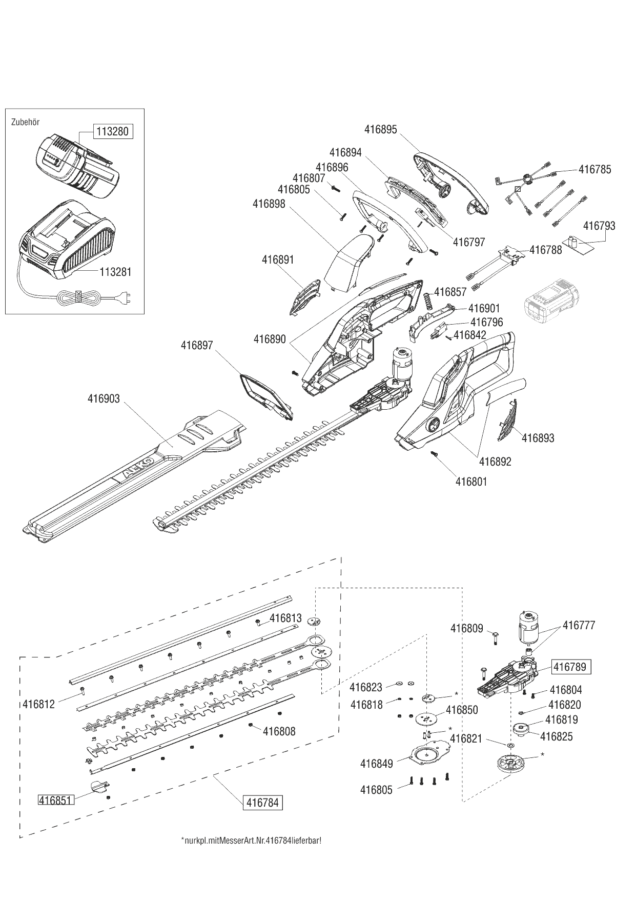 1 ЭЛЕКТРОДВИГАТЕЛЬ, АККУМУЛЯТОР, ЗАРЯДКА AL-KO кусторез аккумуляторный HT 36 Li Артикул: 113331 Запчасти