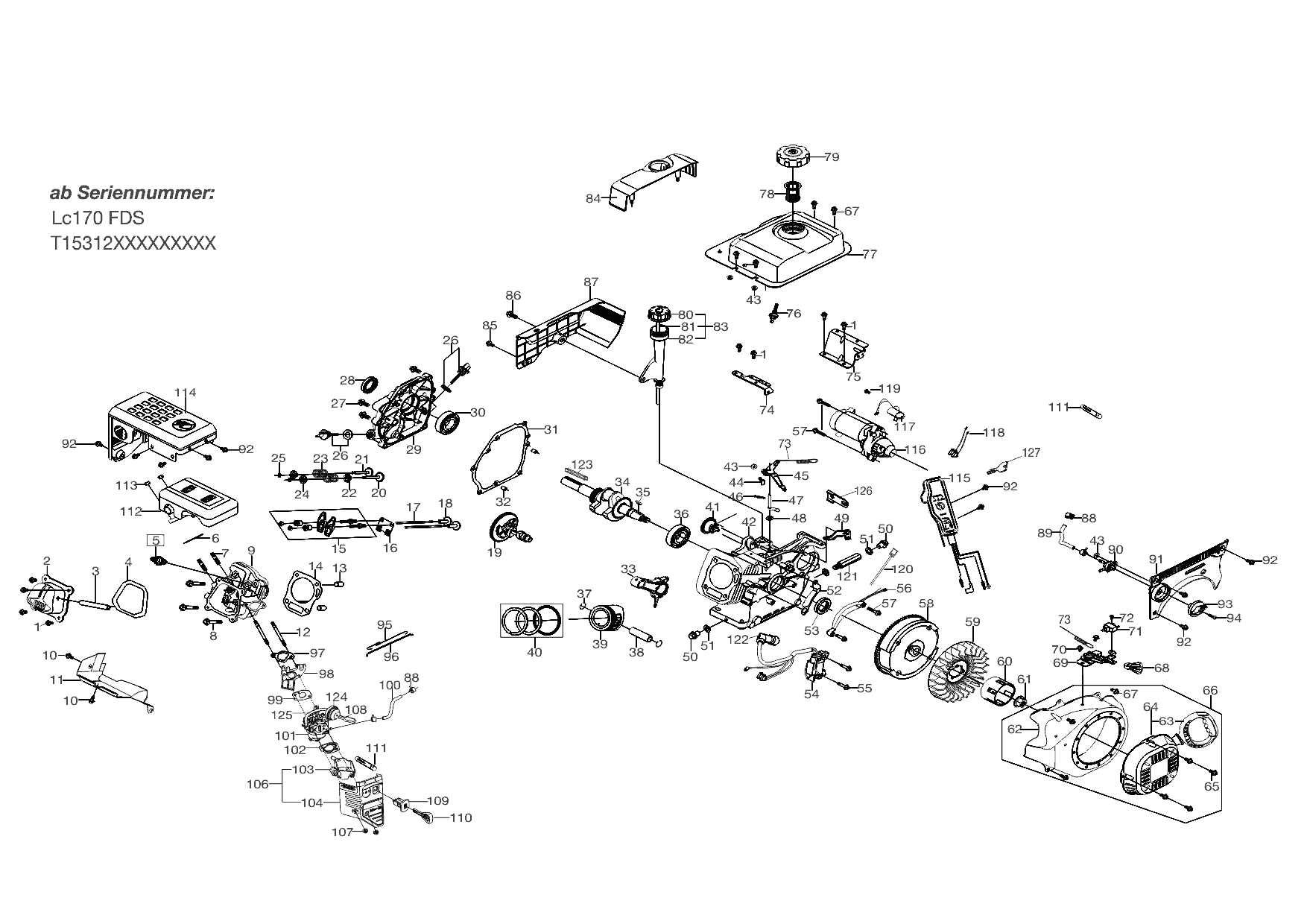 1 | Art. Nr.: 412179 AL-KO BENZINMOTOR 170 SE OHV | с 01/2012 года | МАГНЕТО - МАХОВИК - ПОРШЕНЬ - КОЛЕНВАЛ - КОЛЬЦА - ШАТУН - СТАРТЕР - ЦИЛИНДР - КАРБЮРАТОР | Ремонт | Запчасти СПБ |Запчасти по России