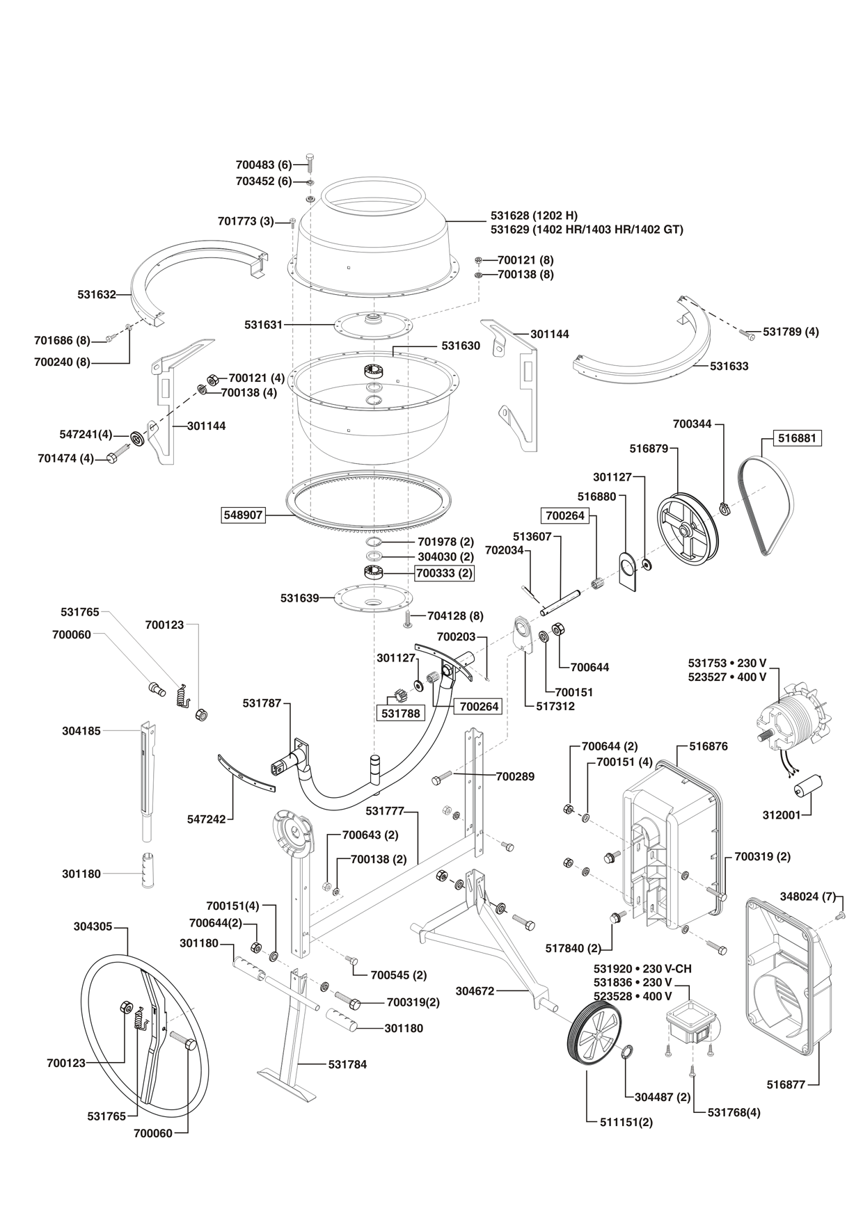 1 | Бетономешалка AL-KO Top 1402 GT Артикул: 112289 с 08/2004 до 09/2005 года | Запчасти | Ремонт AL-KO