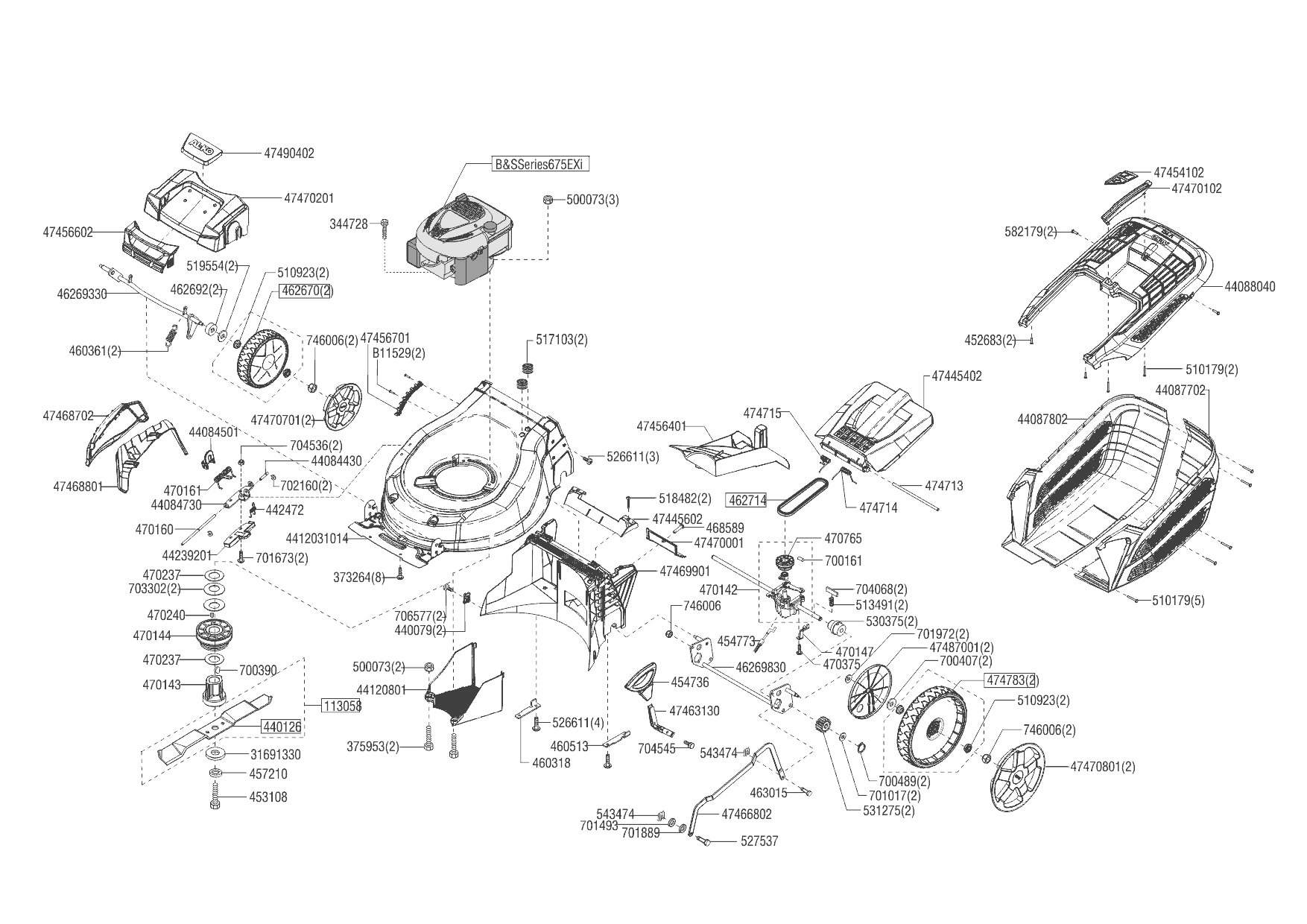 1 НОЖ, АДАПТЕР, РЕМЕНЬ, КОЛЕСА, ТРОС AL-KO газонокосилка Premium 520 VS-B Артикул: 119949