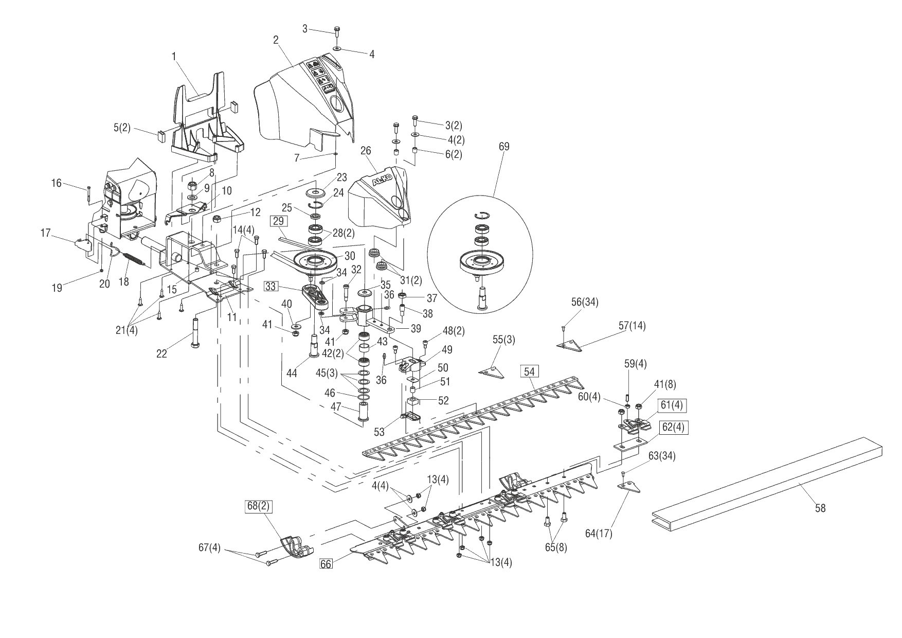 1 АДАПТЕР, РЕМЕНЬ, ШКИВ, НОЖ AL-KO фронтальная BM 875 III Артикул: 112872 с 03/2014