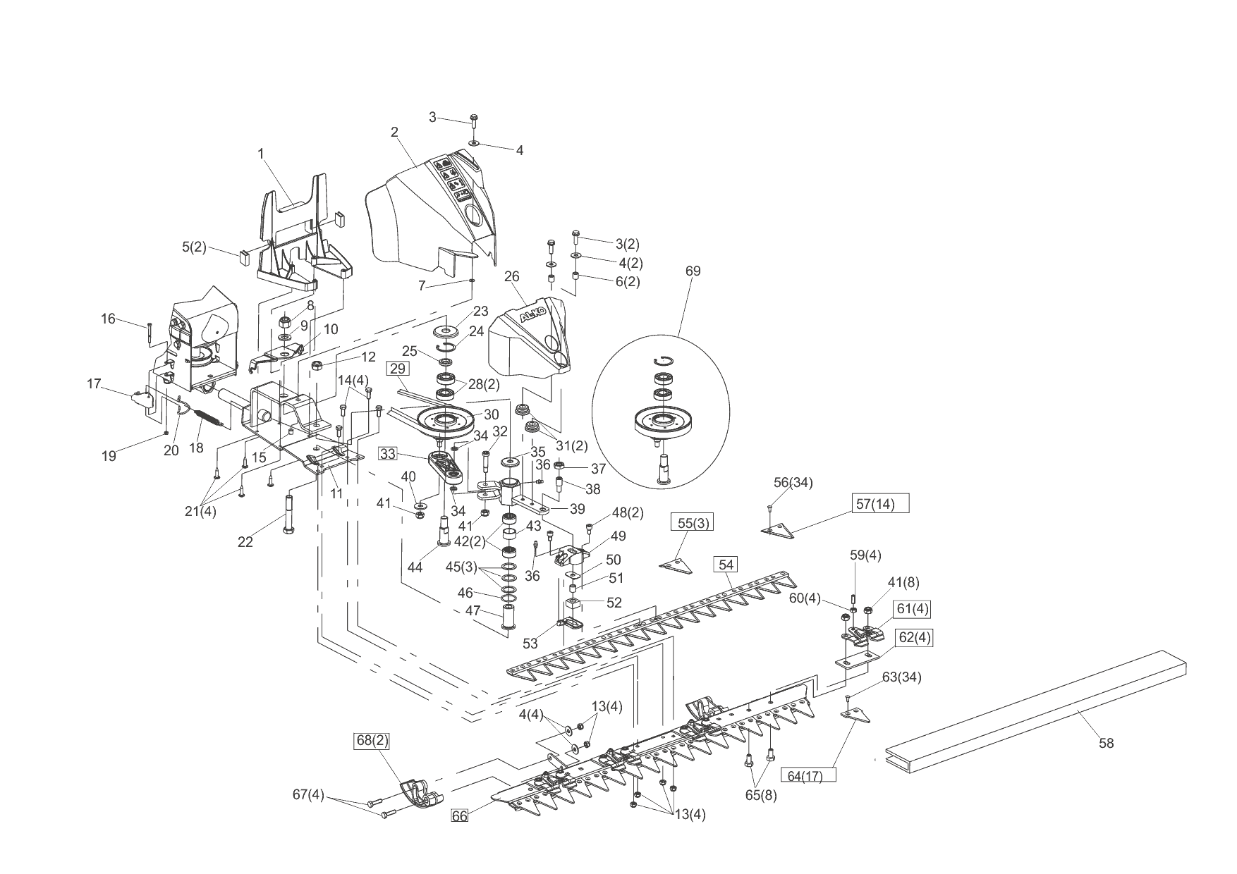 1 АДАПТЕР, РЕМЕНЬ, ШКИВ, НОЖ AL-KO фронтальная BM 875 III Артикул: 112872 с 07/201 до 03/2014