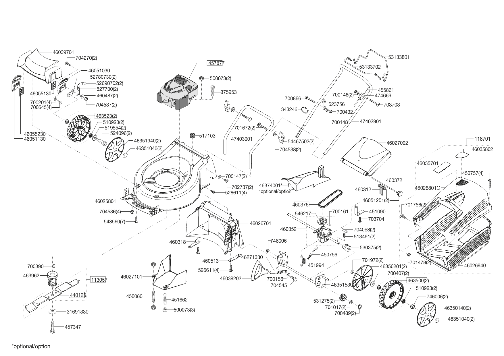 1 НОЖ, АДАПТЕР, РЕМЕНЬ, КОЛЕСА, ТРОС AL-KO газонокосилка Classic 4.66 SP-A edition Артикул: 119766 с 03/2020 года