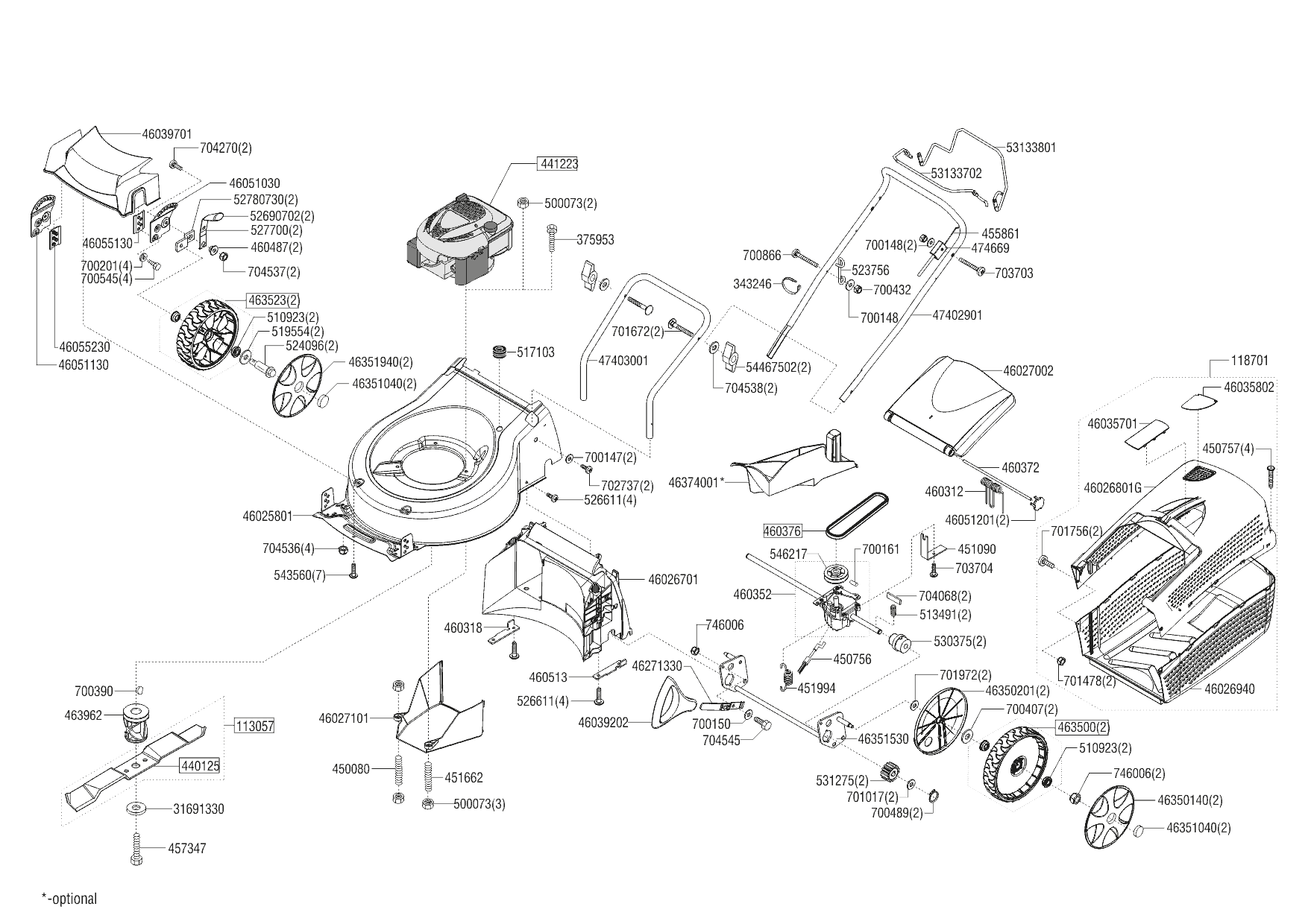1 НОЖ, АДАПТЕР, РЕМЕНЬ, КОЛЕСА, ТРОС AL-KO газонокосилка Classic 4.66 SP-A edition Артикул: 119766 с 09/2019 до 03/2020 года