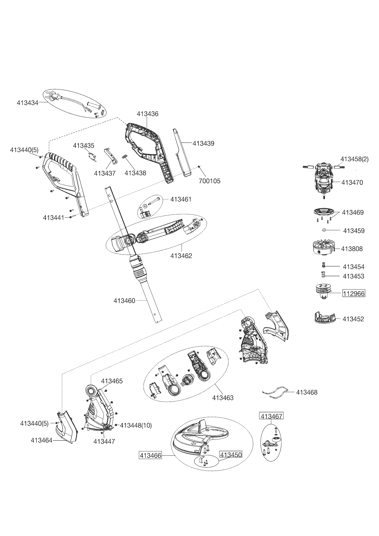 1 ДВИГАТЕЛЬ, ТРИММЕРНАЯ ГОЛОВКА AL-KO электротриммер GTE 550 Premium Артикул: 112926