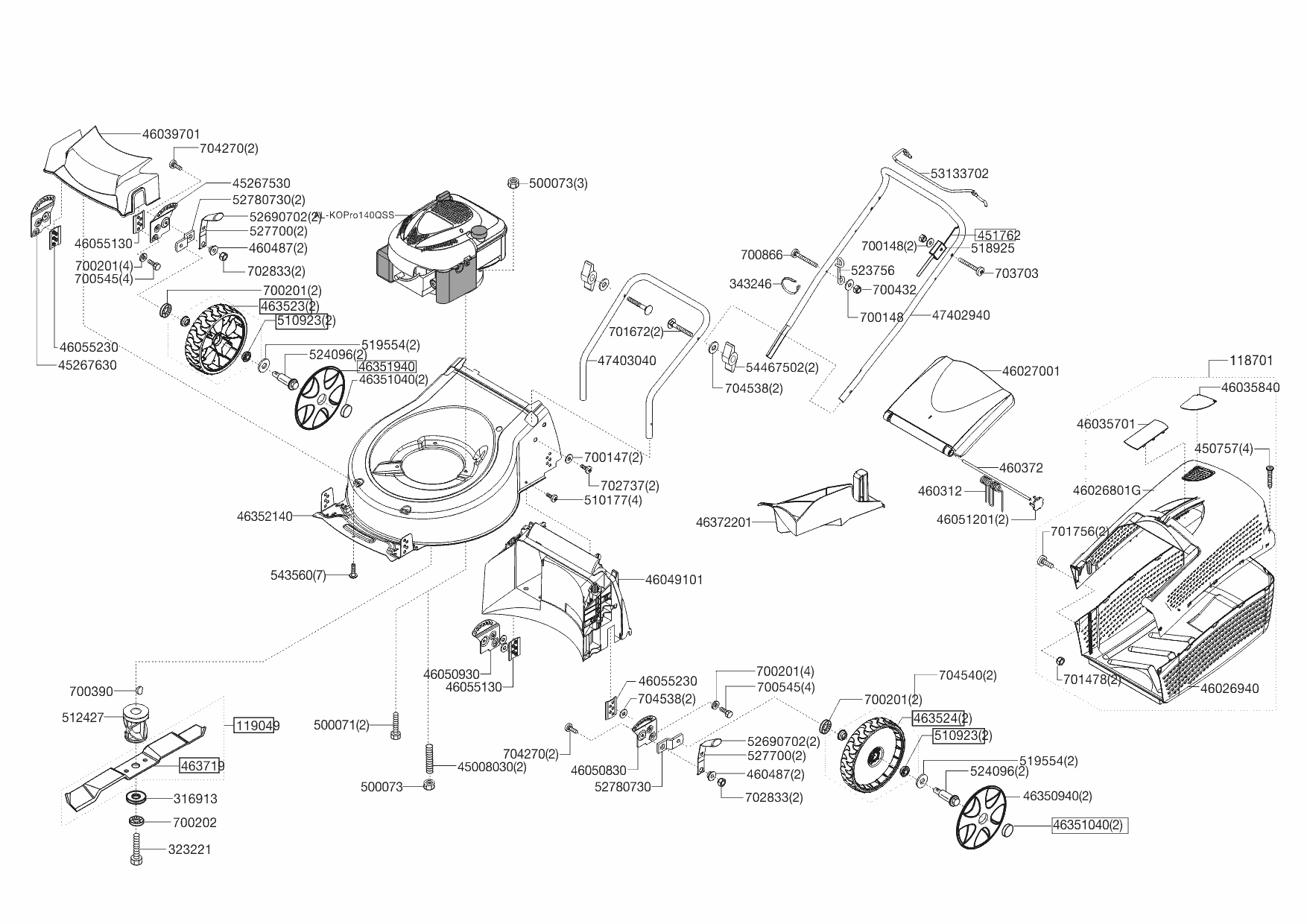 1| НОЖ, АДАПТЕР, РЕМЕНЬ, КОЛЕСА, ТРОС | AL-KO газонокосилка AL-KO Silver 42 B-A Comfort Артикул: 119381 |с 10/2011 до 08/2016 года |