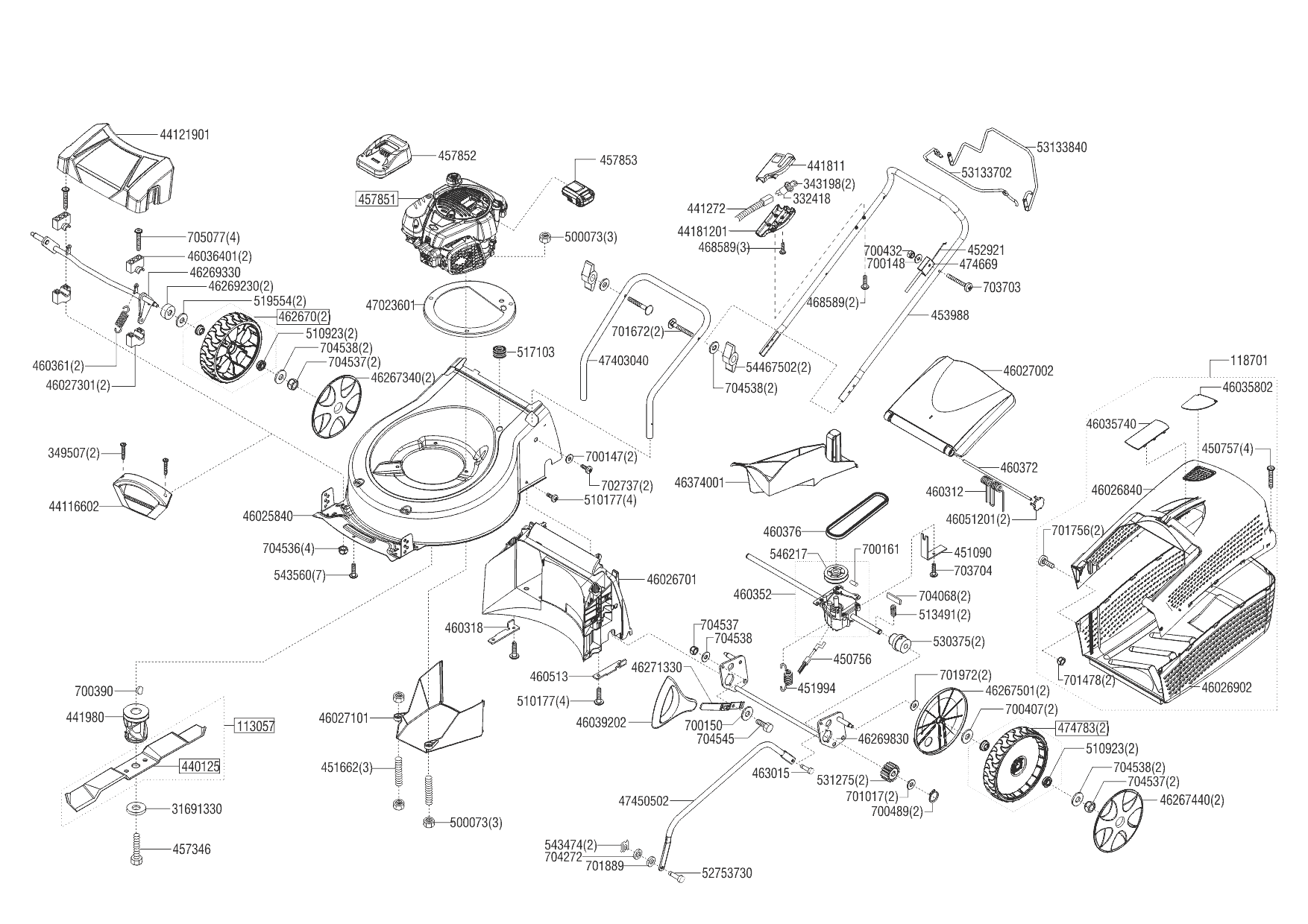 1| AL-KO газонокосилка бензиновая Classic 4.69 SPI-A Plus Артикул: 119886 | с 02/2019 года |НОЖ, АДАПТЕР, РЕМЕНЬ, КОЛЕСА, ТРОС | Запчасти | Ремонт AL-KO