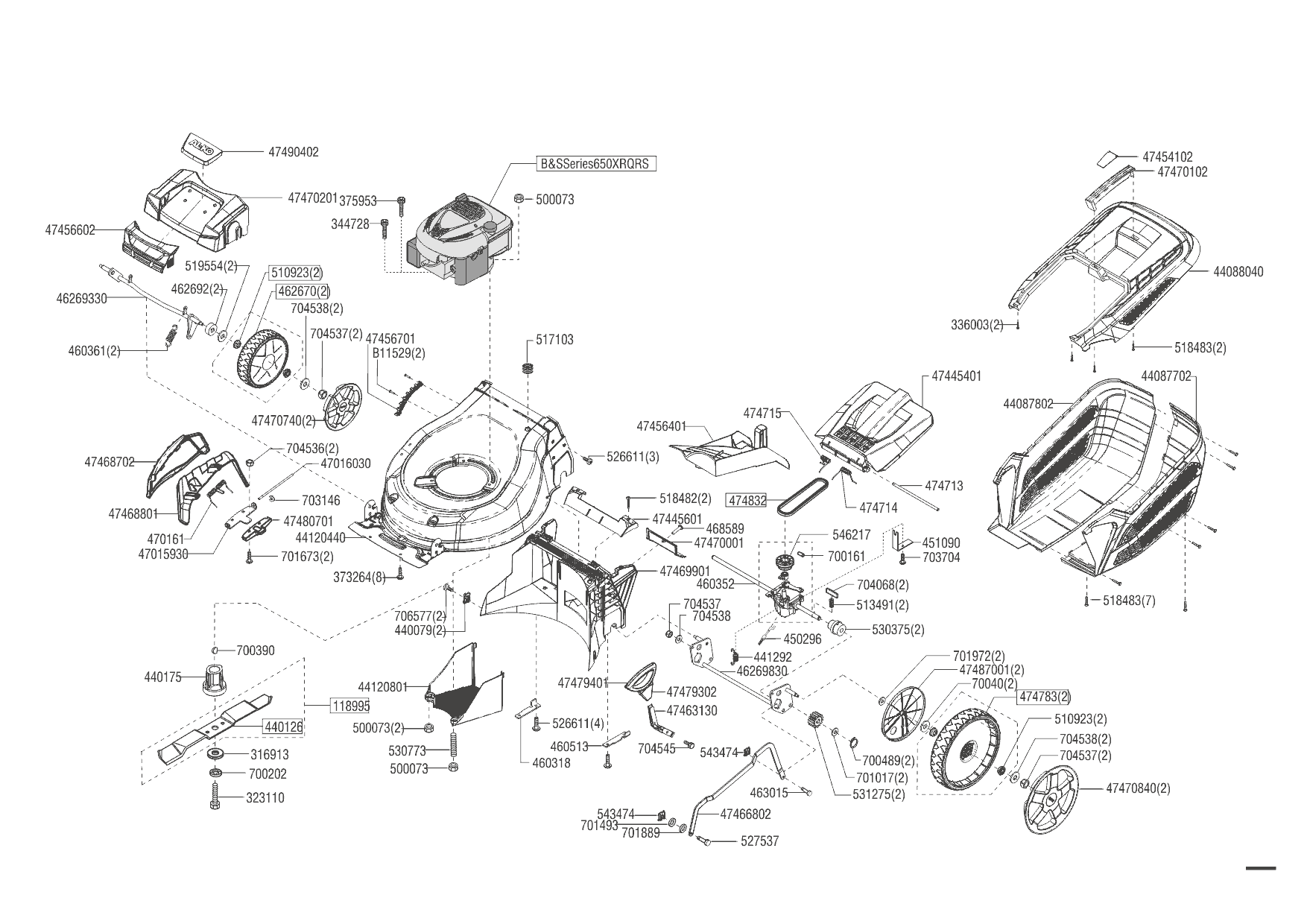 1| НОЖ, АДАПТЕР, РЕМЕНЬ, КОЛЕСА, ТРОС | AL-KO газонокосилка бензиновая Highline 525 SP Артикул: 119669 | Запчасти | Ремонт AL-KO