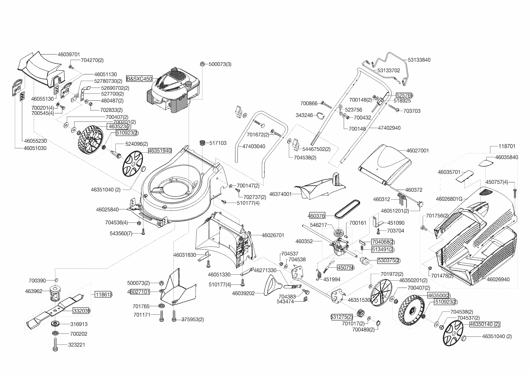 1| AL-KO газонокосилка бензиновая SILVER COMFORT 46 BR Артикул: 119069 | с 06/2011 до 09/2016 года |НОЖ, АДАПТЕР, РЕМЕНЬ, КОЛЕСА, ТРОС | Запчасти | Ремонт AL-KO