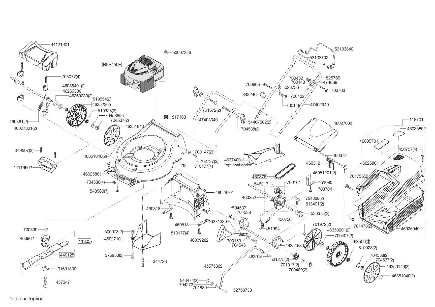 1 НОЖ, АДАПТЕР, РЕМЕНЬ, КОЛЕСА, ТРОС AL-KO газонокосилка Classic 4.65 SP-B Артикул: 119611 с 07/2019 года