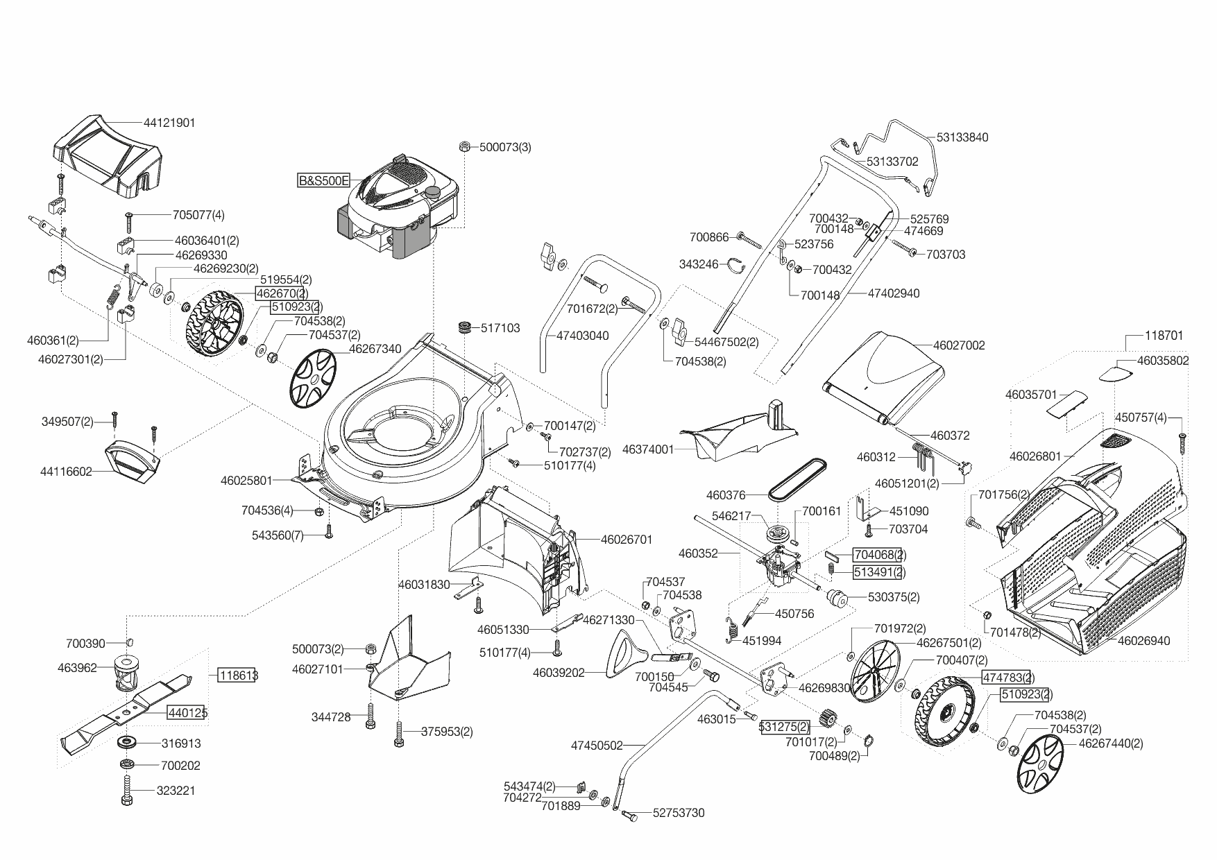 1| НОЖ, АДАПТЕР, РЕМЕНЬ, КОЛЕСА, ТРОС | AL-KO газонокосилка Classic 4.65 SP-B Plus Артикул: 119612 |с 02/2015 до 08/2019 года