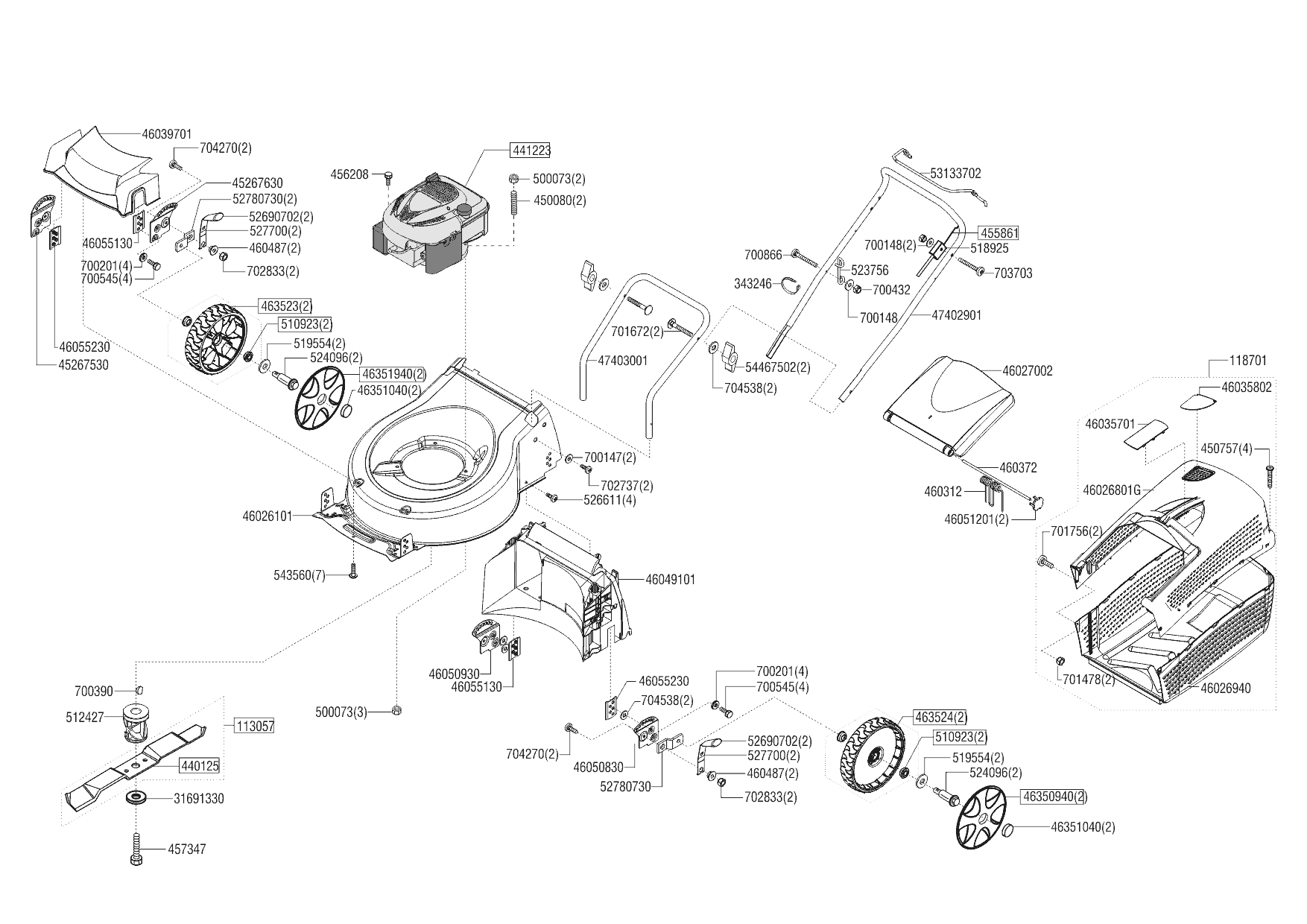 1 НОЖ, АДАПТЕР, РЕМЕНЬ, КОЛЕСА, ТРОС AL-KO газонокосилка Classic 4.66 P-A edition Артикул: 119765 с 03/2018 до 03/2020 года