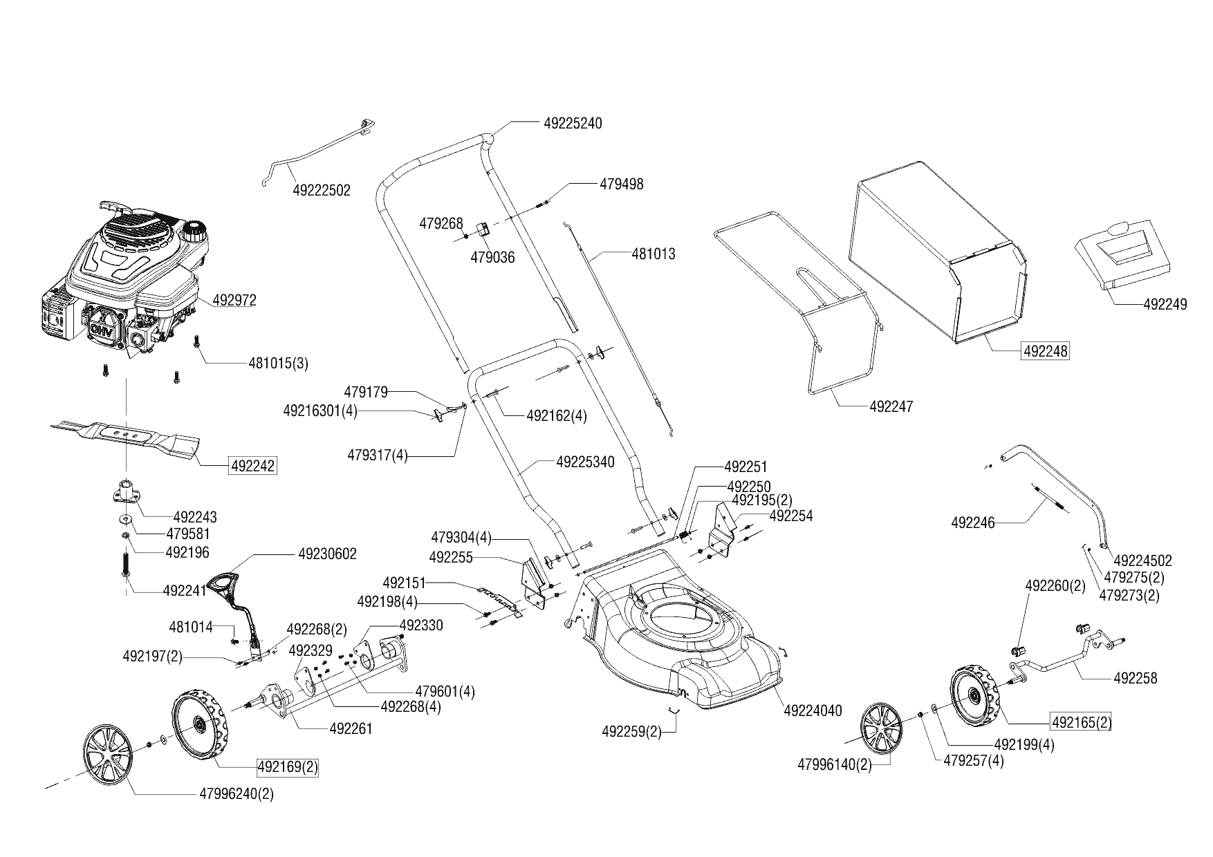 1 НОЖ, АДАПТЕР, РЕМЕНЬ, КОЛЕСА, ТРОС AL-KO газонокосилка бензиновая EASY 4.2 P-S Артикул: 113794