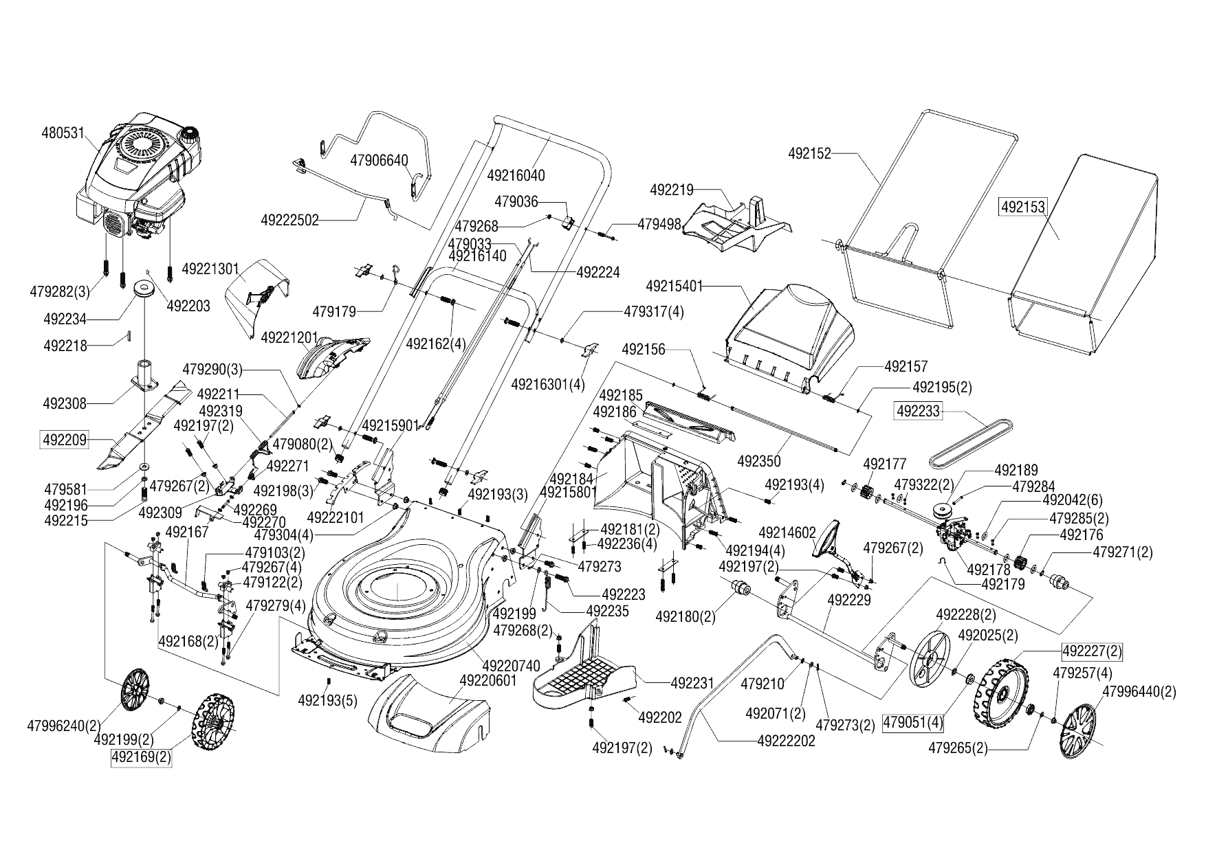 1 НОЖ, АДАПТЕР, РЕМЕНЬ, КОЛЕСА, ТРОС AL-KO газонокосилка бензиновая EASY 5.1 SP-S Артикул: 113607