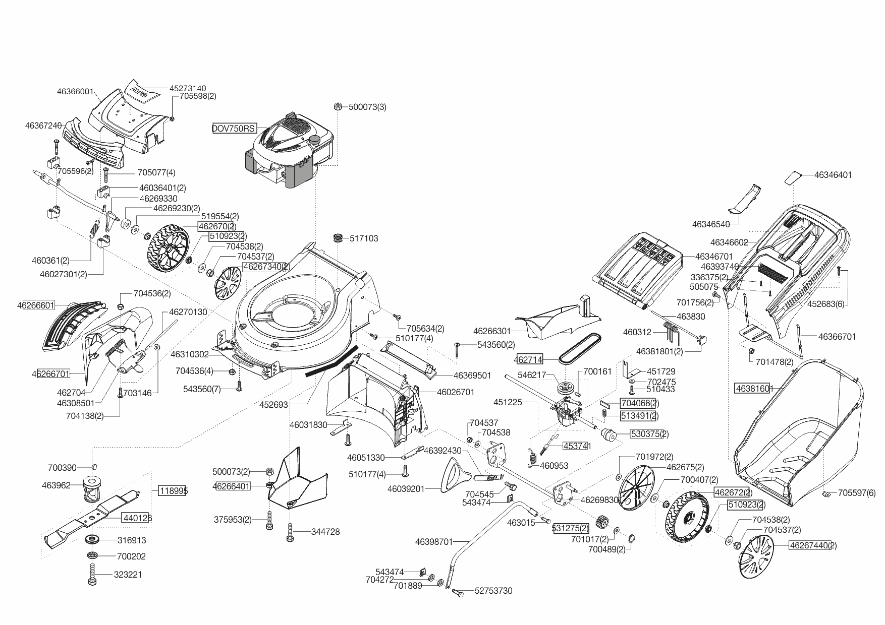 1 НОЖ, АДАПТЕР, РЕМЕНЬ, КОЛЕСА, ТРОС AL-KO газонокосилка Powerline 5200 BR Артикул: с 03/2012 года