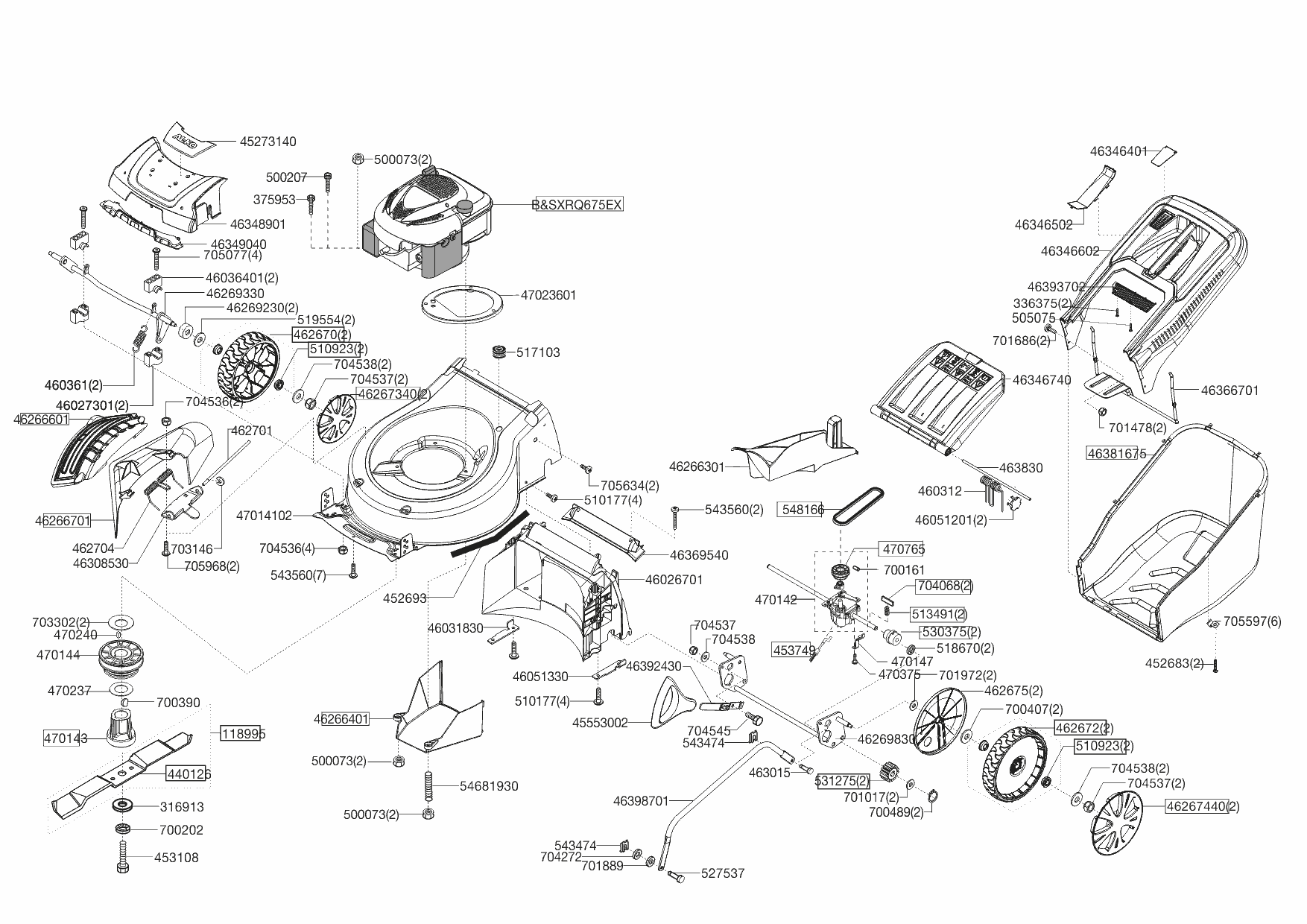 1| НОЖ, АДАПТЕР, РЕМЕНЬ, КОЛЕСА, ТРОС | AL-KO газонокосилка Powerline 5204 VS Selection Артикул: 119529 |с 12/2013 до 03/2015 года