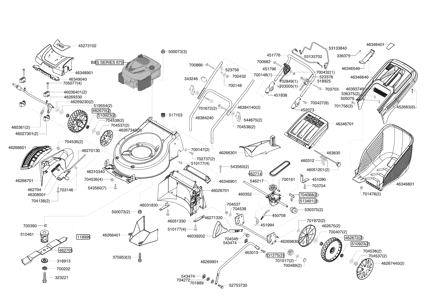 1| НОЖ, АДАПТЕР, РЕМЕНЬ, КОЛЕСА, ТРОС | AL-KO газонокосилка Silver 520 BR Premium Артикул: 119255 | с 11/2009 до 09/2010 года |