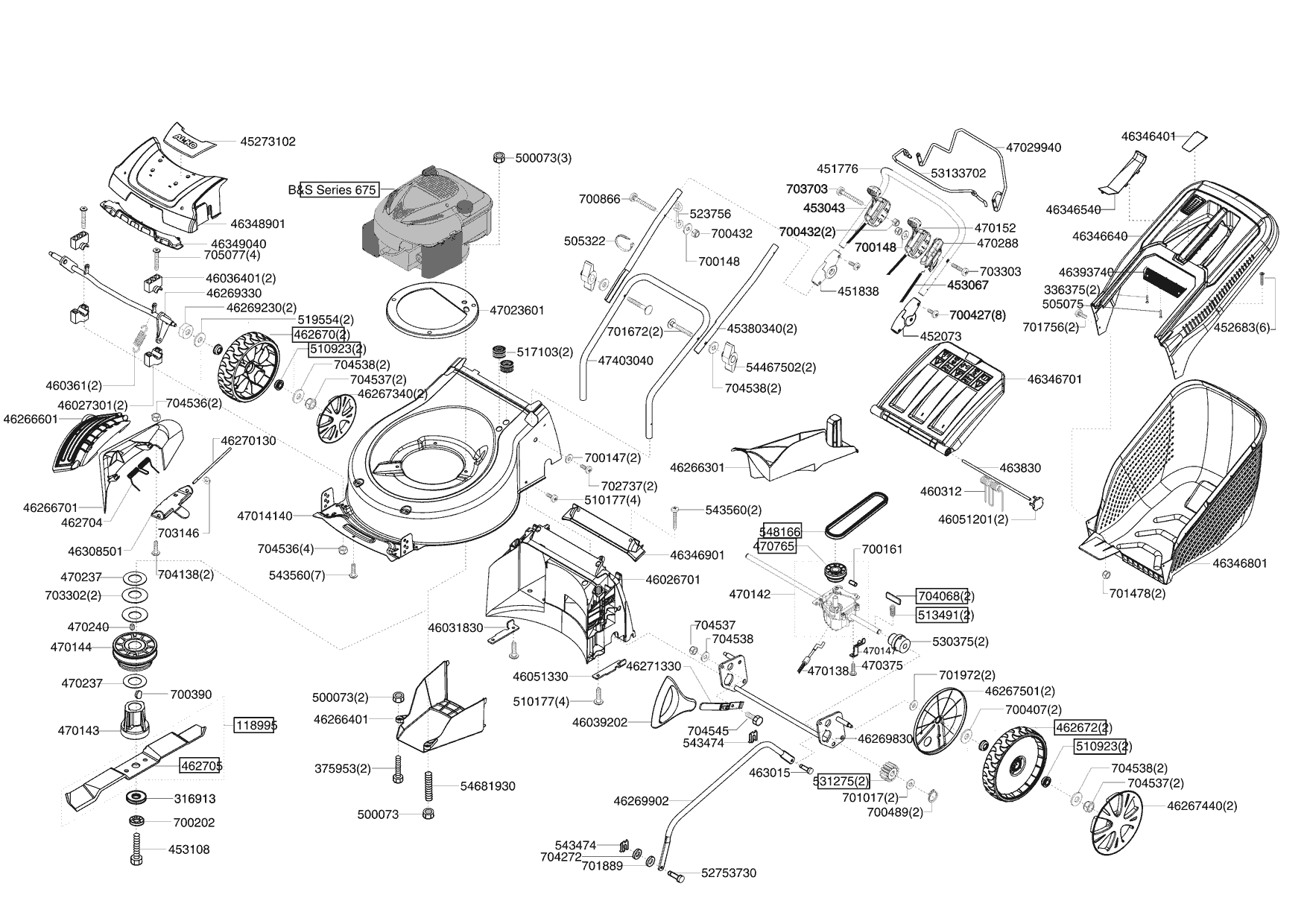 1| НОЖ, АДАПТЕР, РЕМЕНЬ, КОЛЕСА, ТРОС | AL-KO газонокосилка Silver 520 BRV Premium Артикул: 119316 |с 01/2011 до 07/2012 года|