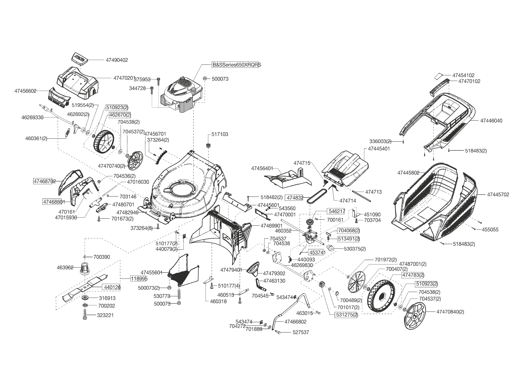 1 НОЖ, АДАПТЕР, РЕМЕНЬ, КОЛЕСА, ТРОС AL-KO газонокосилка Highline 523 SP Артикул: 119467 с 02/2013 до 05/2013 года