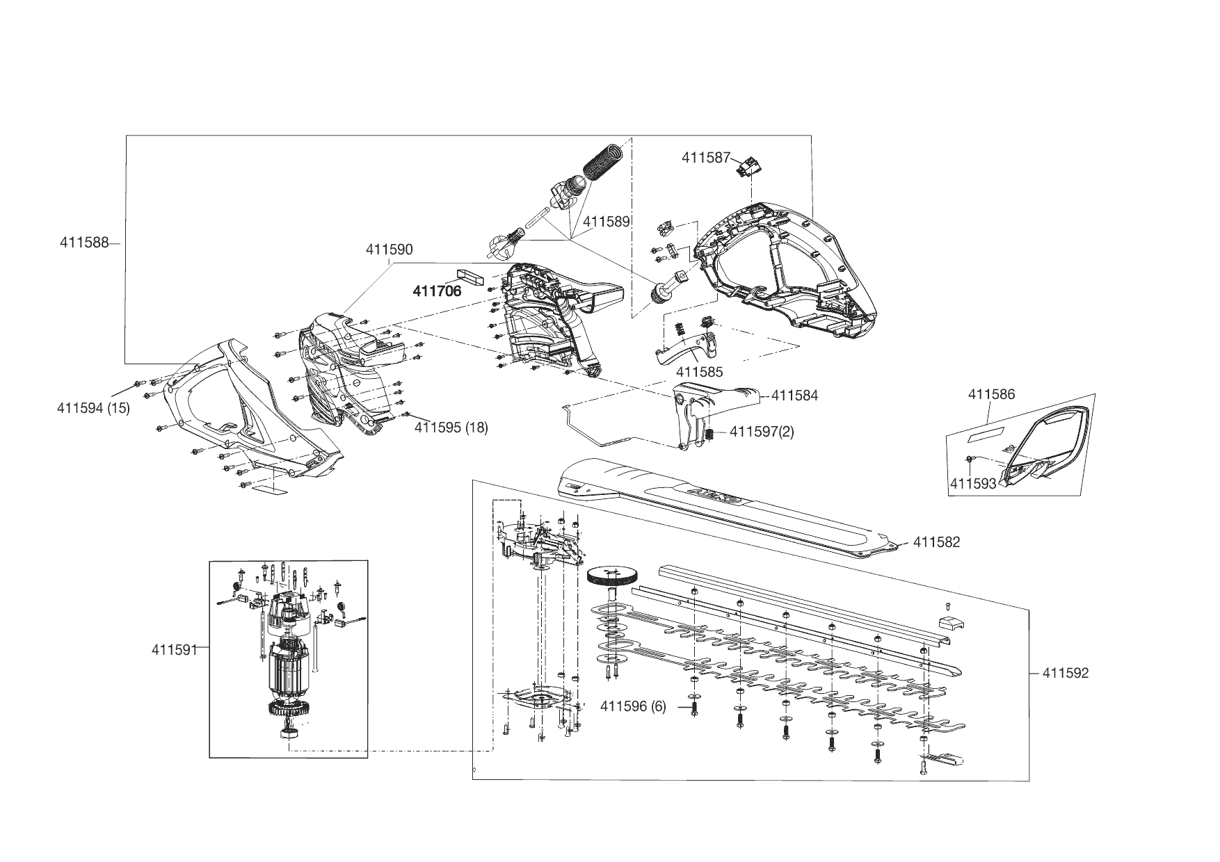 1 ЭЛЕКТРОДВИГАТЕЛЬ, НОЖИ, ЩЕТКИ AL-KO кусторез HT 550 Safety Cut Артикул: 112680 с 08/2010 года Запчасти