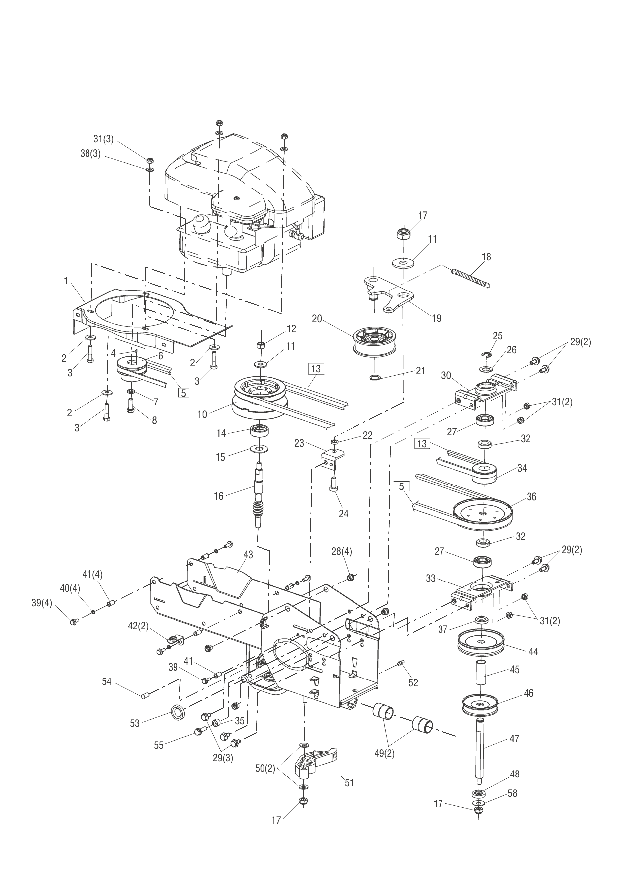 1 АДАПТЕР, РЕМЕНЬ, ШКИВ, НОЖ AL-KO косилка фронтальная BM 875 III Артикул: 113617