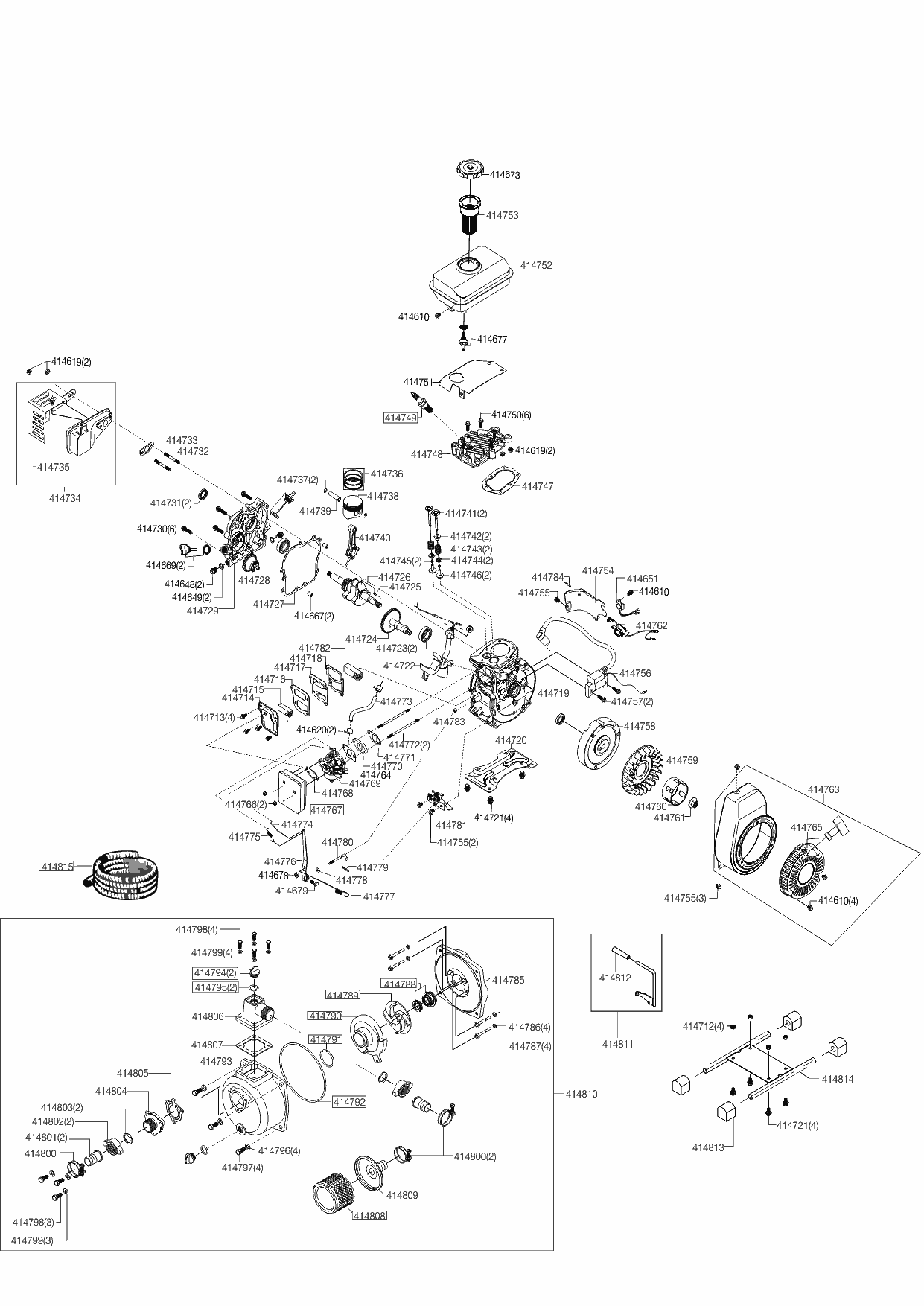 1 СТАРТЕР, КАРБЮРАТОР, КРЫЛЬЧАТКА, САЛЬНИКИ, МАГНЕТО AL-KO мотопомпа бензиновая BMP 14000 Артикул: 113216