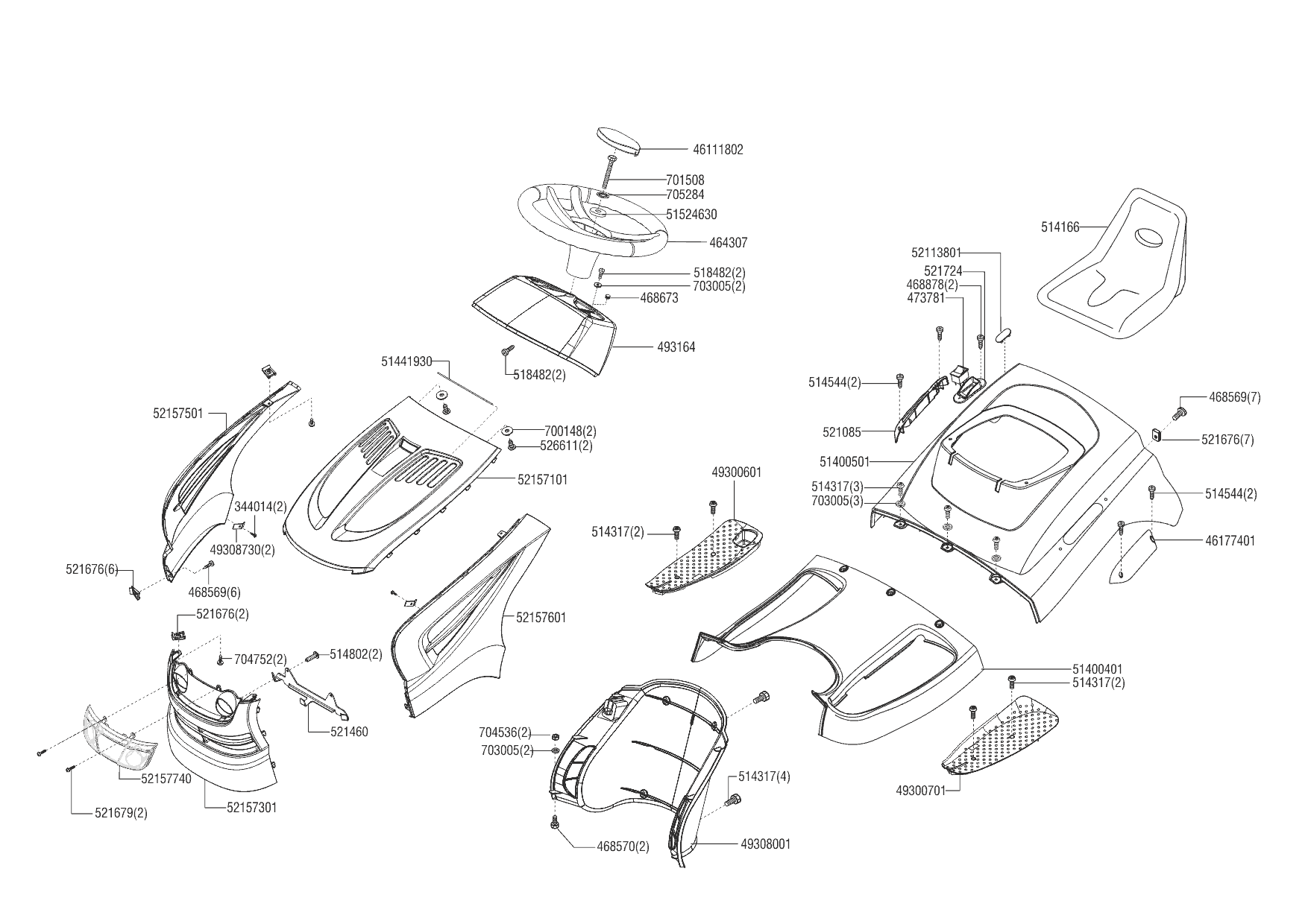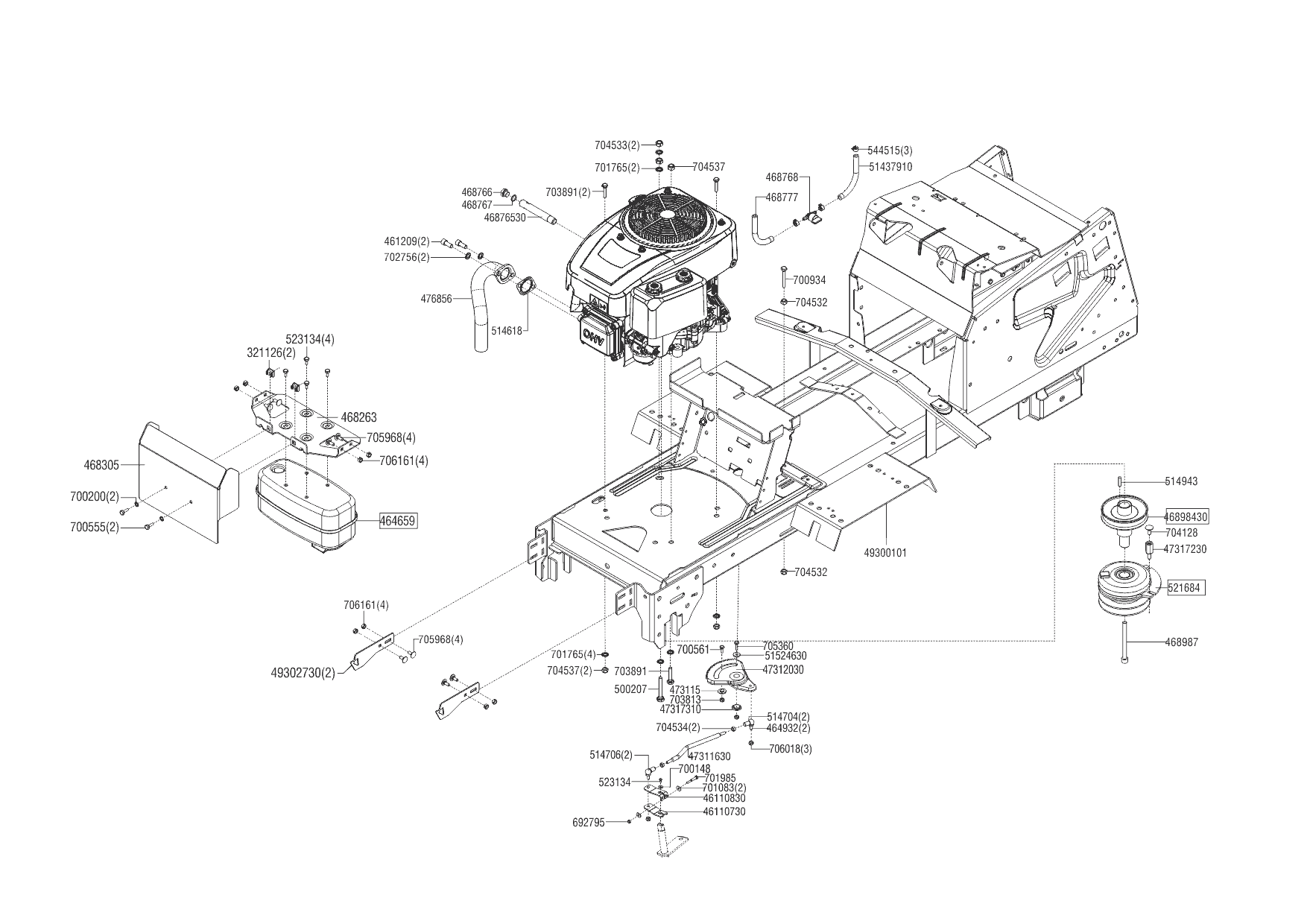 1 РАМА КОЖУХА AL-KO трактор T 13-93.8 HD-A Black Edition Артикул: 119865 с 11/2017 по 04/2018 года
