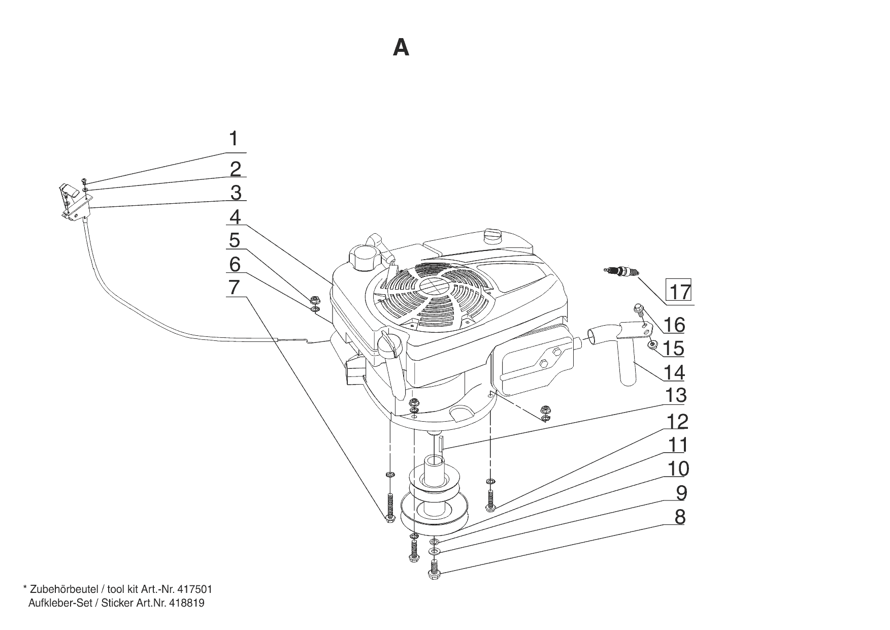 1 ДВИГАТЕЛЬ ШКИВ Садовый рейдер solo by AL-KO R 7-65.8 HD Артикул: 127487