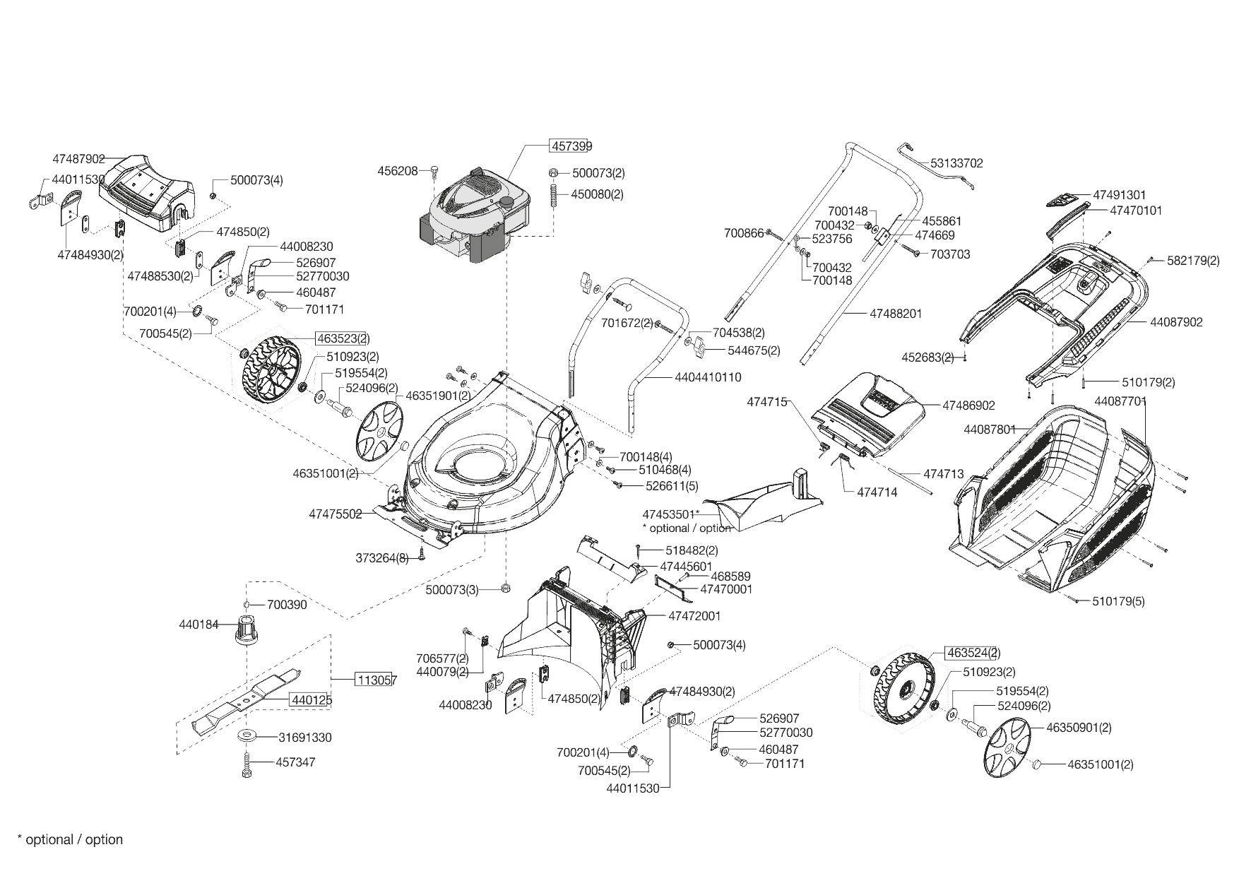 1 НОЖ, АДАПТЕР, РЕМЕНЬ, КОЛЕСА Solo by AL-KO бензиновая газонокосилка 4710 P-A Артикул 127580