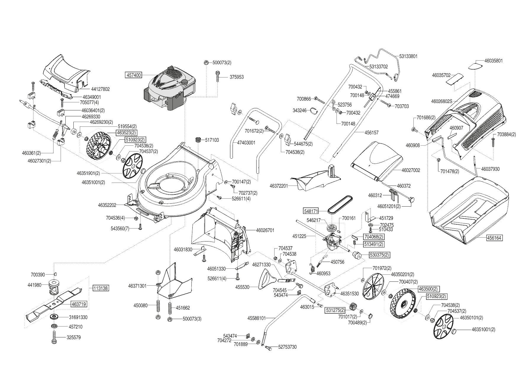 1 РУЧКА, ТРОС, НОЖ, АДАПТЕР, РЕМЕНЬ, КОЛЕСА solo by AL-KO газонокосилка 4238 SP-A Артикул 127454 c 11/2017 по 03/2019 года