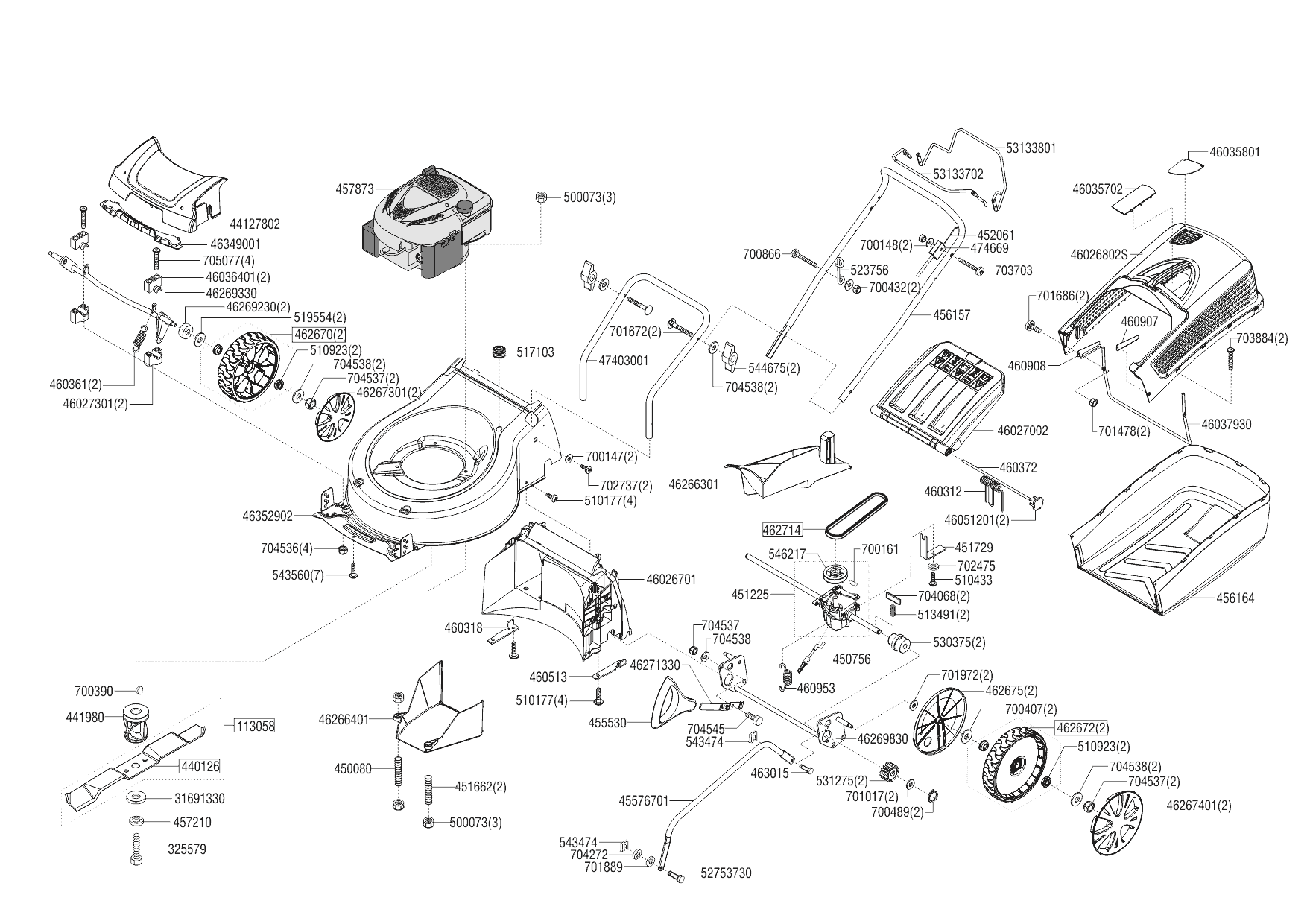 1 НОЖ, АДАПТЕР, РЕМЕНЬ, КОЛЕСА, РУЧКА, ТРОС solo by AL-KO газонокосилка 5239 SP-A Артикул 127535 с 09/2018 до 02/2019 года
