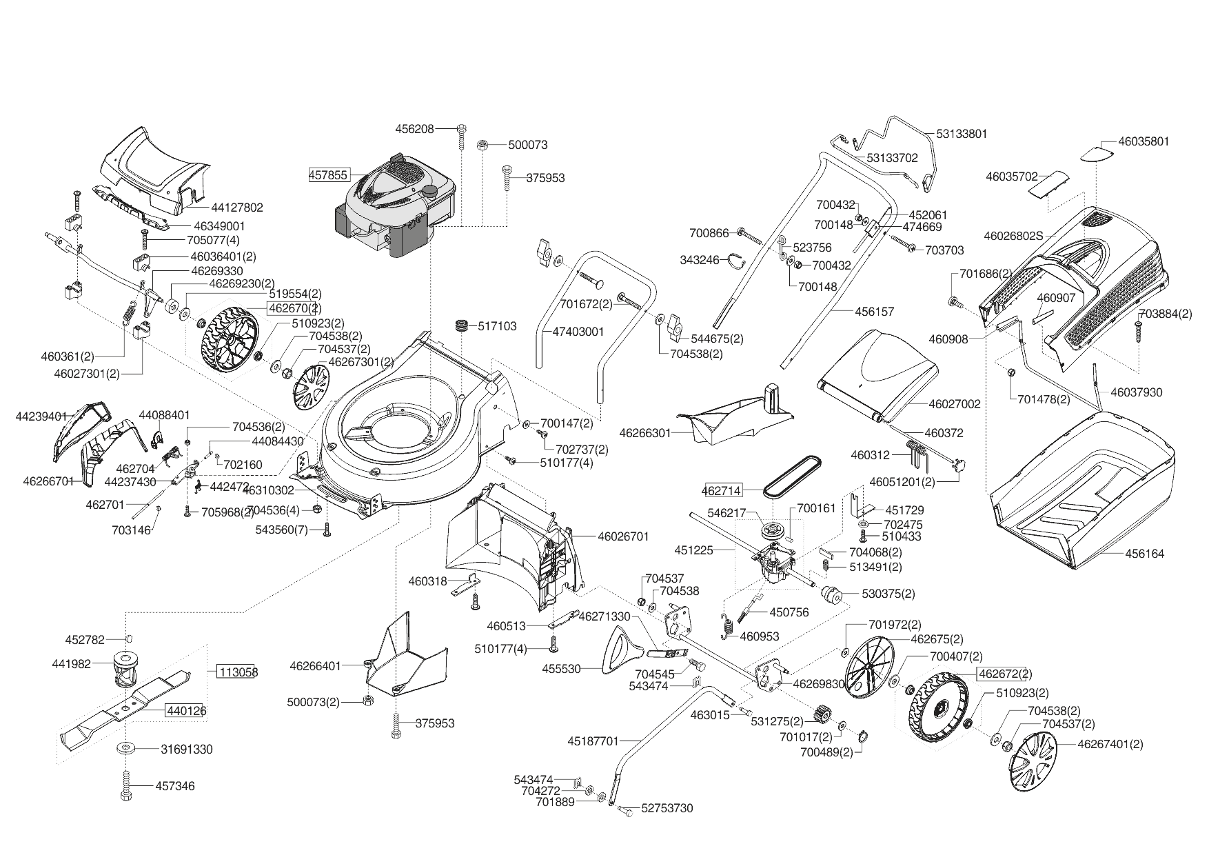 1 НОЖ, АДАПТЕР, РЕМЕНЬ, КОЛЕСА, РУЧКА, ТРОС solo by AL-KO газонокосилка 5239 SP-H Артикул: 127568 от 03/2019 года