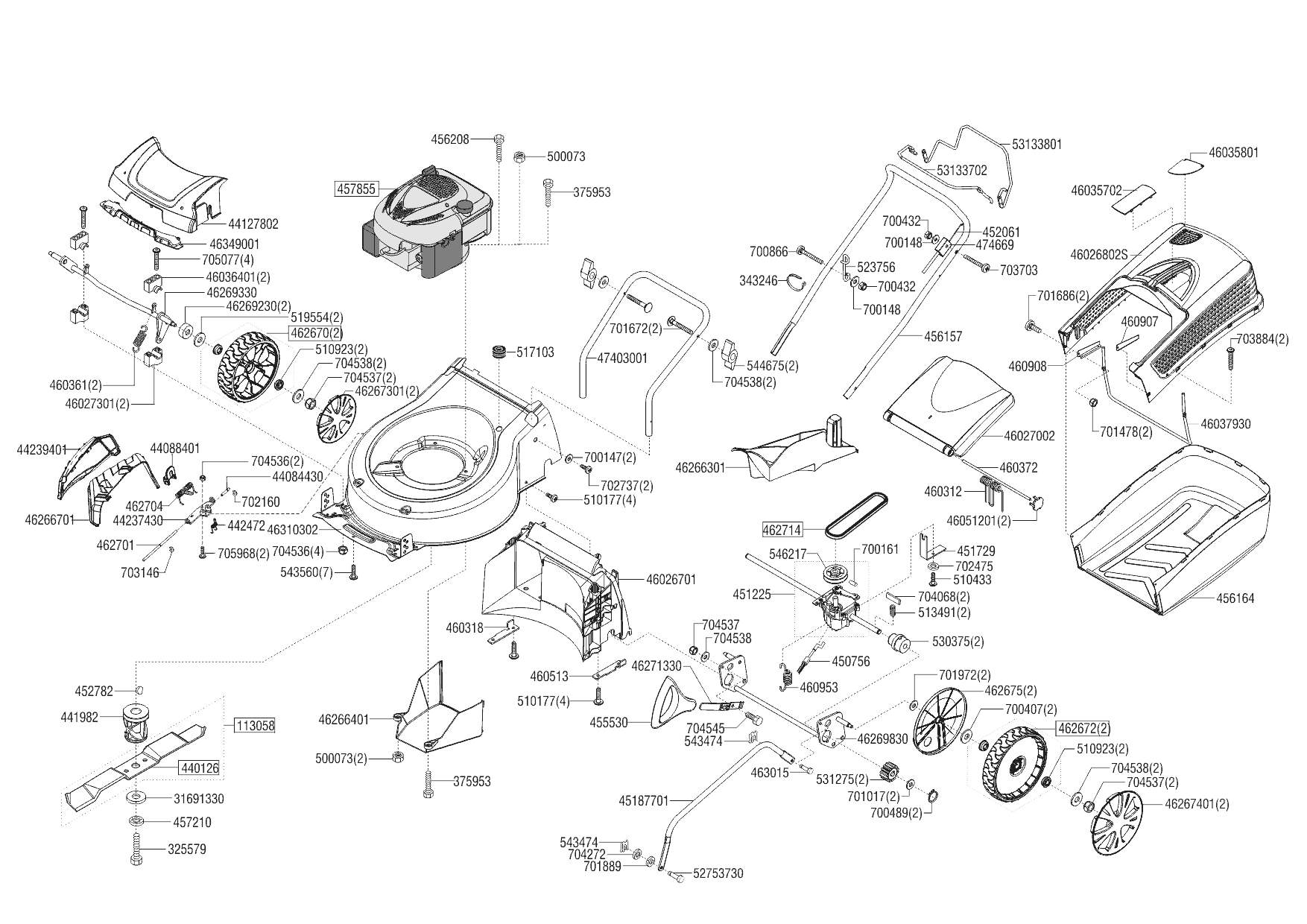 1 НОЖ, АДАПТЕР, РЕМЕНЬ, КОЛЕСА, РУЧКА, ТРОС solo by AL-KO газонокосилка 5239 SP-H Артикул: 127568 с 01/2019 до 03/2019 года